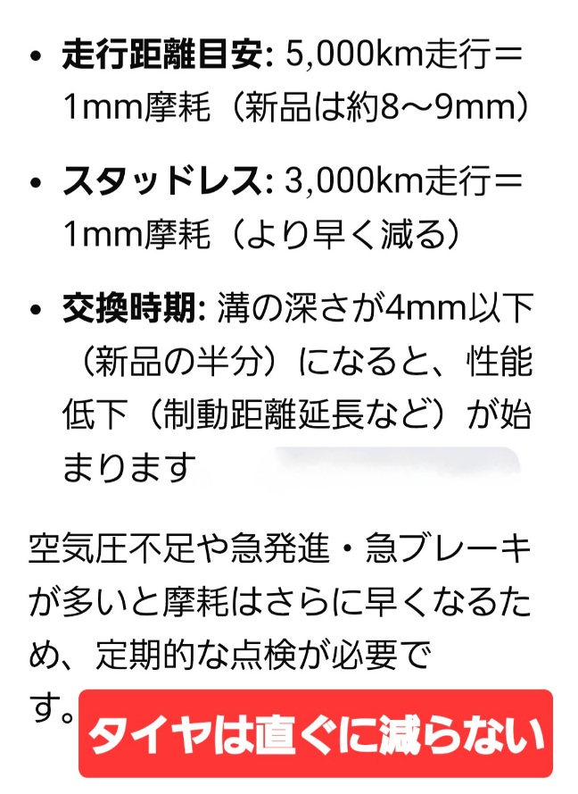 スタッドレスタイヤ購入後4年で交換目安です。だから11月から3月では思っているよりタイヤは減らないです♪